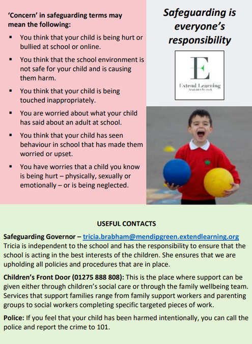 Mendip Green is dedicated to looking after all our children the best we possibly can. Safeguarding covers children’s physical, social and emotional well-being and runs alongside our work on health and safety and online safety.