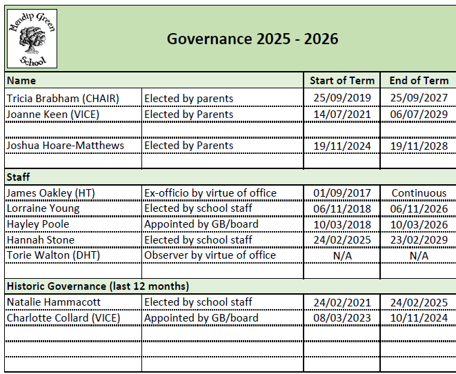 Details of our governing body can be found in the table below. A register of governor attendance at meetings and historic governance, including attendance, for the previous 12 months can be found in the documents section below.
