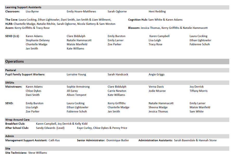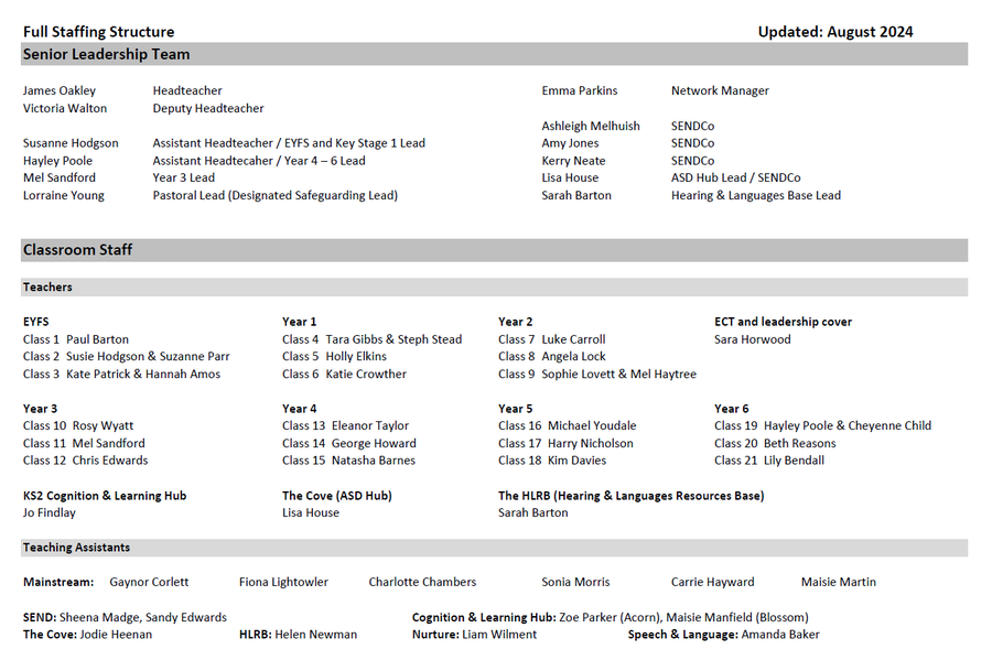 Below is a list of people that you are most likely to meet at Mendip Green. A copy of our full staffing structure is available at the bottom of this page.